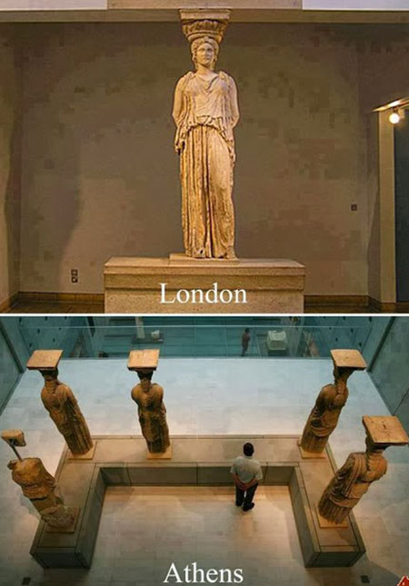 В 1827 году во время осады Афин, одна из Кариатид раскололась во время бомбежки. И спустя несколько лет, лорд Элгин взял еще одну и отправил её в Лондон… Чтобы никогда не вернуть, чтобы навсегда разлучить сестер. В течение многих лет государство пытается вернуть одну из Кариатид.