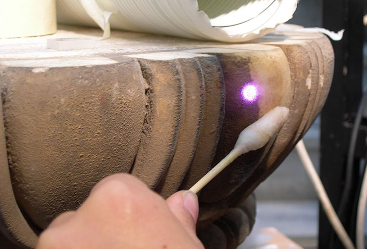Белую поверхность «кожи» очищают от слоев сажи, оставленных загрязнением. Их деликатная красота нуждается рук художника, чтобы не повредить их утонченную красоту. И когда сажу удаляют, обнаруживают новые проблемы мраморной поверхности.