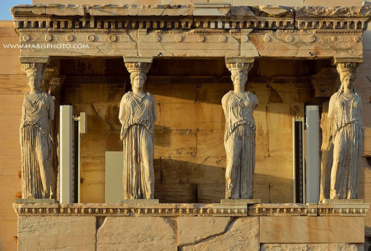 Пять Дочерей, как их называют, поддерживали антаблемент, проводя свое время на южном балконе, любуясь Парфеноном и Афинами.