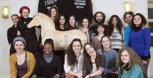Работа труппы началась в сентябре 2013 года с семинара Tiyatro Medressi, в Киркидзе (Сиринс), в Турции, в сочетании с исследовательской поездкой в Трою. В ходе семинара труппа обсуждала вопросы отчуждения, предрассудков, говорила о причинах и последствиях войны, а также о вопросах, которые освещает Еврипид через преимущественно женскую точку зрения. Начиная с этой отправной точки, целью было раскрыть общие корни и над ними построить современный театральный опыт через творческий процесс.