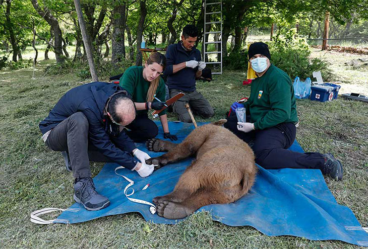 Двум медведям сейчас шестнадцать месяцев и, прежде чем вернуться в дикую природу, они были осмотрены ветеринарами «Арктуроса» и оснащены радарными ошейниками, которые были размещены вокруг их шей.