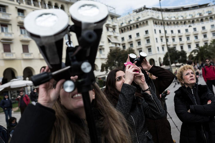 Впечатляющие снимки редкого феномена природы и зрители в Аттике и на площади Аристотеля в Салониках