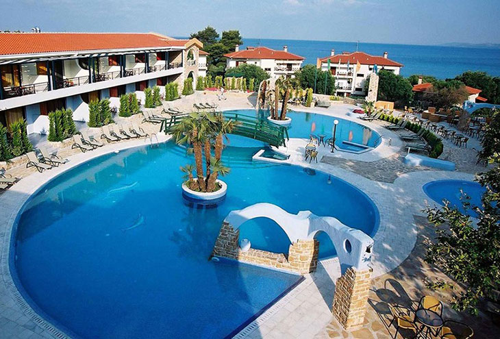 Это один из самых элегантных отелей второго пальца полуострова Халкидики, с развитой инфраструктурой, великолепным комплексом роскошных мезонет.