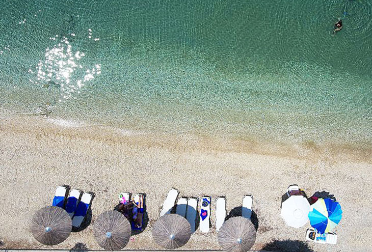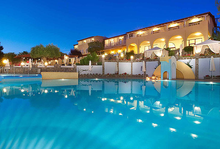 Отель расположен на пляже из золотистого песка, омывающемся хрустальными водами Эгейского моря.