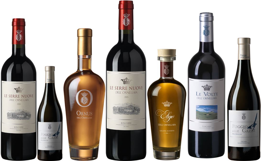 Красные Le Volte dell’ Ornellaia (Merlot, Sangiovese and Cabernet Sauvignon), Le Serre Nuove dell’ Ornellaia (Cabernet Sauvignon, Merlot, Cabernet Franc & Petit Verdot), Ornellaia (Cabernet Sauvignon, Merlot, Cabernet Franc & Petit Verdot)