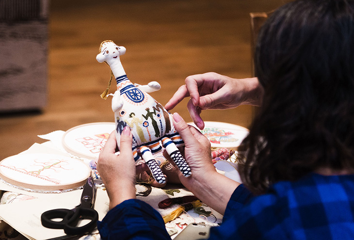 воркшоп по традиционной мессинийской вышивке, видеопоказ о работе марки Zeus+Dione и Интерлюдия греческого художника Blind Adam.