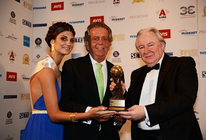 Grand Resort Lagonissi – лучший конференц-центр в Европе. Генеральный менеджеру отеля Никос Тзимас /в центре/ получает дорогую награду