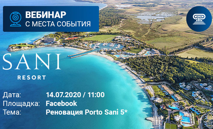 Вебинар с места события, а именно с территории Porto Sani, стартует в 11:00 во вторник и будет доступен для просмотра всем желающим, а не только профессионалам индустрии отдыха.