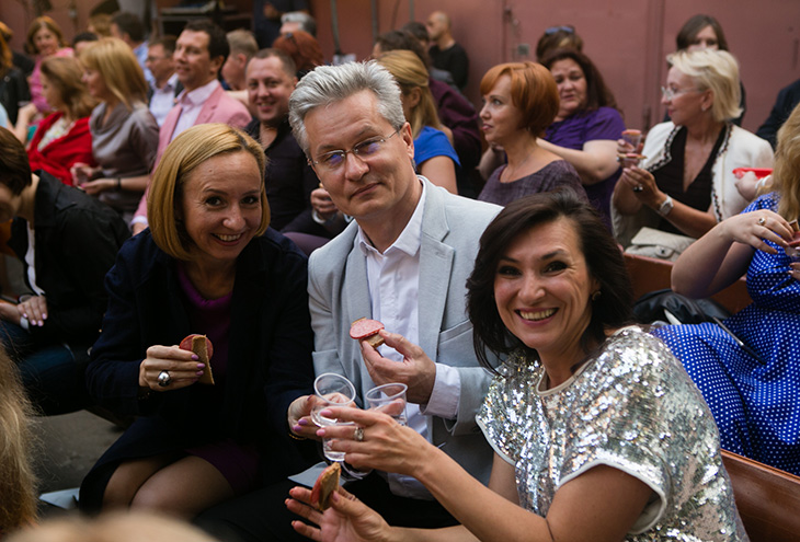 После спектакля именинник в лице коллектива «Пантеона» принимал поздравления почетных гостей,