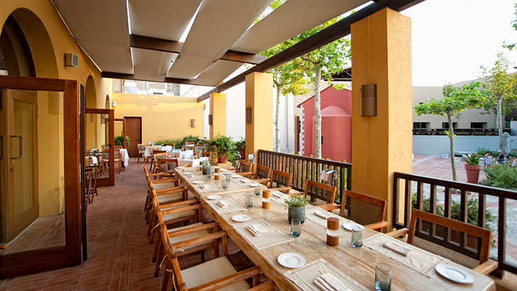 Это заведение отличается изысканным оформлением интерьеров и чарующими панорамными видами на ухоженную зеленую территорию курорта. Однако главной особенностью ресторана является его гастрономия, основанная на исключительно органических продуктах местного производства: все ингредиенты на кухню поставляются либо из садов Costa Navarino, либо закупаются у локальных поставщиков, чьи фермы расположены вблизи курорта.