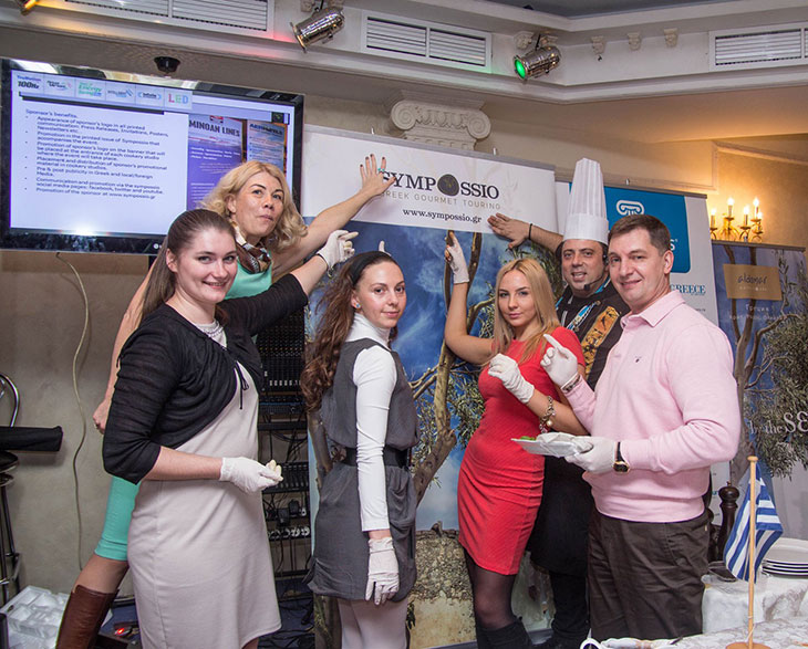 Оно случилось в прекрасной кухне Колледжа Туризма и гостиничного хозяйства, и я не устану благодарить Светлану Александрову Антонову (Директора), Леночку Шевченко (Зам. Директора) и студентов этого заведения за великолепную поддержку проекта на стадии его рождения в России. И бесконечное спасибо Саше Доценко, Кате Котиковой и прозорливому их руководству за то, что поверили и сделали все, чтобы проект родился, а в 2012 году и встал, уже уверенно, на ноги при их же поддержке и… пошагал по нашей прекрасной стране, завоёвывая, помимо Питера, город за городом, очаровывая Урал и Поволжье, разнося ароматы греческой кухни, и влюбляя в Грецию тех, кто еще по каким-то странным причинам, там еще не был!