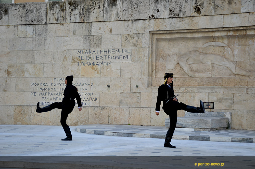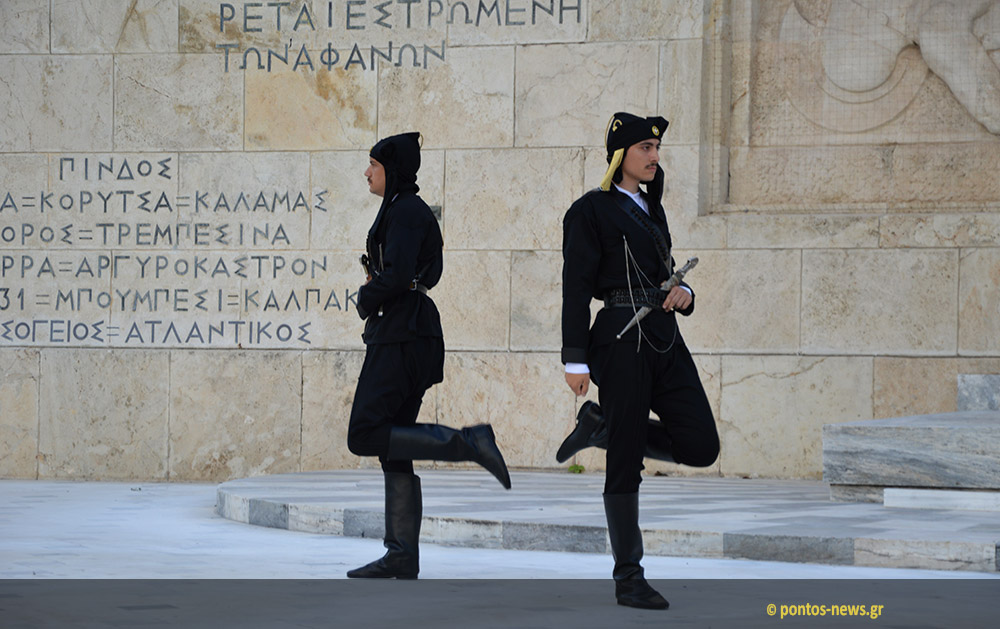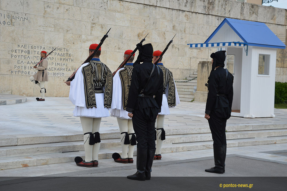 Главным событием стала смена караула - когда эвзонов в привычной белой форме национальной гвардии сменяли эвзоны в чёрных понтийских костюмах.