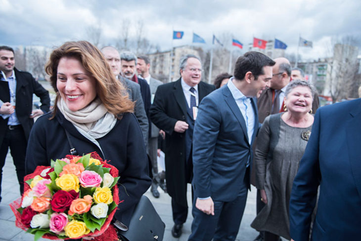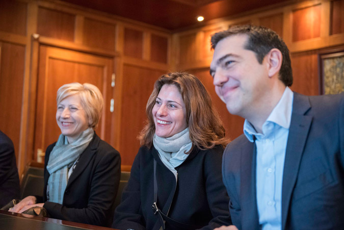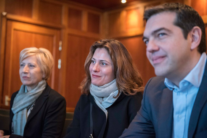 Посол Греции в РФ Данаи-Магдалини Куманаку, Бетти Базьяна и Алексис Ципрас. Фото с сайта - www.protothema.gr