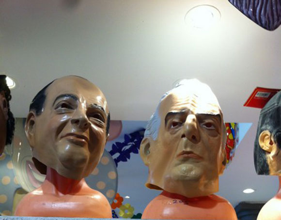 Столько же стоит и латексная маска бывшего премьер-министра Костаса Караманлиса, который, как показала последняя поездка по Салоникам, очень популярен в городе. Гораздо дешевле, за 3 евро, продается сделанная из бумаги маска президента политической партии ЛАОС Йоргоса Каратзафериса.