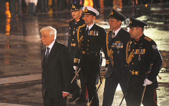 Здесь же присутствовали председатель Парламента, премьер-министр, министр обороны Панос Камменос и другие члены правительства.