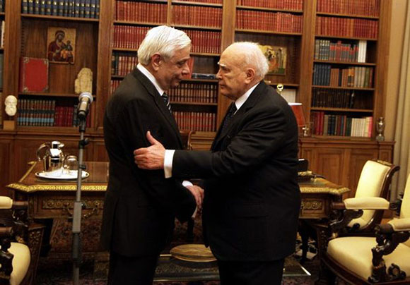 Бывший президент Республики Каролос Папульяс приветствовал его теплым рукопожатием. «Я уверен, что Вы будете хорошим президентом... Вы работали в ключевых министерствах, были прекрасным учителем... Вы принимаете на себя в трудный период много проблем. Я уверен, что Вы сделаете всё, что можете, Вы можете создать твердую почву для национального примирения ", - сказал Папульяс.