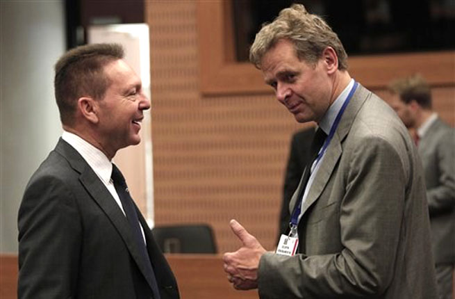 Решения в отношении Греции так и не были приняты на прошедшем в Никозии на Кипре заседании Eurogroup, хотя Президент Еврогруппы Жан-Клод Юнкер отметил значительный прогресс в экономике и политике Греции. Для Греции жизненно важно получить очередную порцию кредита в сумме 31,5 млрд. Однако, на вопрос, будет ли выданы Греции деньги или же выдача очередной порции кредита непосредственно связана с ратификацией греческим парламентом мер на сумму в 11,9 млрд., министр финансов Я. Ступнарас ответил, что это зависит от отчета «Тройки». Яннис Стурнарас отметил, что даже сторонники выхода Греции из евро (Голландия, Австрия) на заседании в Никозии заметно смягчились, и начинают рассматривать положительно вопрос об удлинении срока выплаты греческого долга, правда, без обещания предоставления Греции новых кредитов. Как бы там ни было, решения по поводу Греции вновь отложены... До ратификации раздираемым противоречиями греческим парламентом жестоких экономических мер, предлагаемых коалиционным греческим правительством.