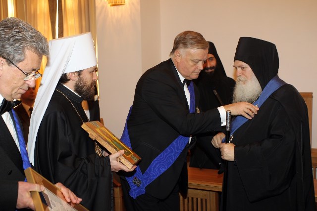 Греция. Афон. Святогорский Ватопедский монастырь. Вручение награды архимандриту Ефрему. Фото с сайта - www.fap.ru
