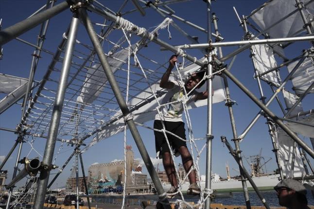 Плавучий город из парусов и канатов создали более 160 студентов и молодых архитекторов в порту Пирей, в рамках организации Hellastock 2014.