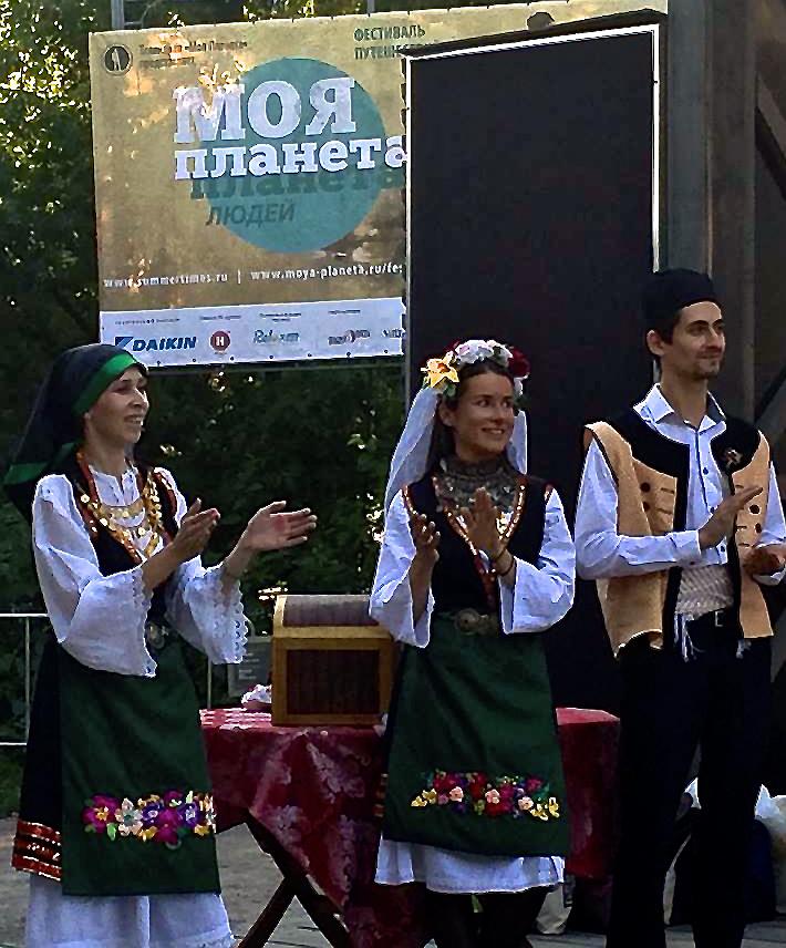 Сегодня в рамках фестиваля путешествий «Моя планета. Планета людей» в московском парке искусств Музеон, танцевальный коллектив Греческого культурного центра под руководством Татьяны Черной, приоткрыл завесу тайны традиционных греческих свадебных обрядов. В песнях и танцах перед зрителями разворачивались красочные сценки подготовки «жениха» и «невесты» к самому важному для них событию, родительского благословения, выноса пирога, похожего на русский каравай, танцев со свечами, которые принять ставить в плошку с хной , венчания и, конечно же, всеобщего веселья. Желающих примкнуть к хороводу оказалось так много, что все едва уместились на сцене летнего кинотеатра.