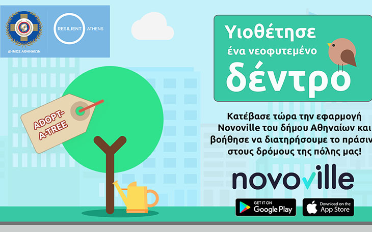 В рамках инициативы Усынови Дерево жителям города предлагается объединиться в команду из трех человек и взять на себя заботу лишь об одном дереве. Для участия в в программе афинянам необходимо скачать на свои смартфоны приложение Novoville app, которое позволит как зарегистрироваться в качестве участника, так и выступит в качестве органайзера: каждый раз когда «усыновленному» дереву потребуется полив, ответственные за него горожане получат соответствующие уведомления на свои мобильные устройства.