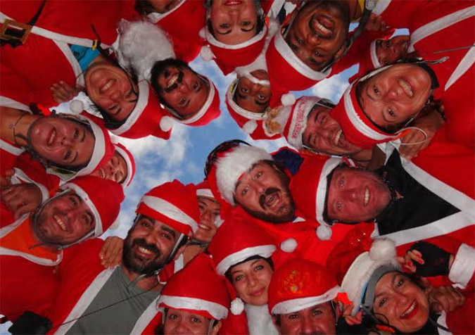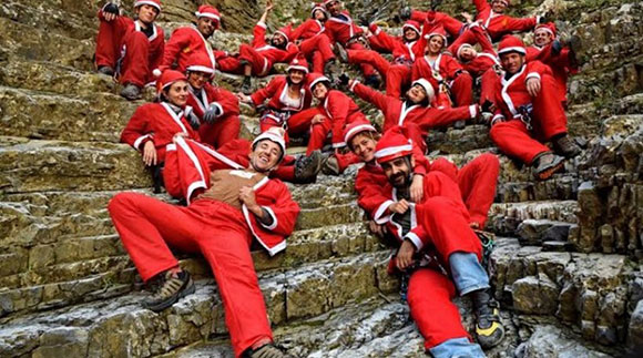 Двадцать членов группы, одетых в цвета Деда Мороза с праздничным настроением провели технический спуск в ущелье.