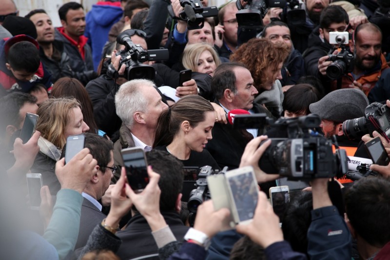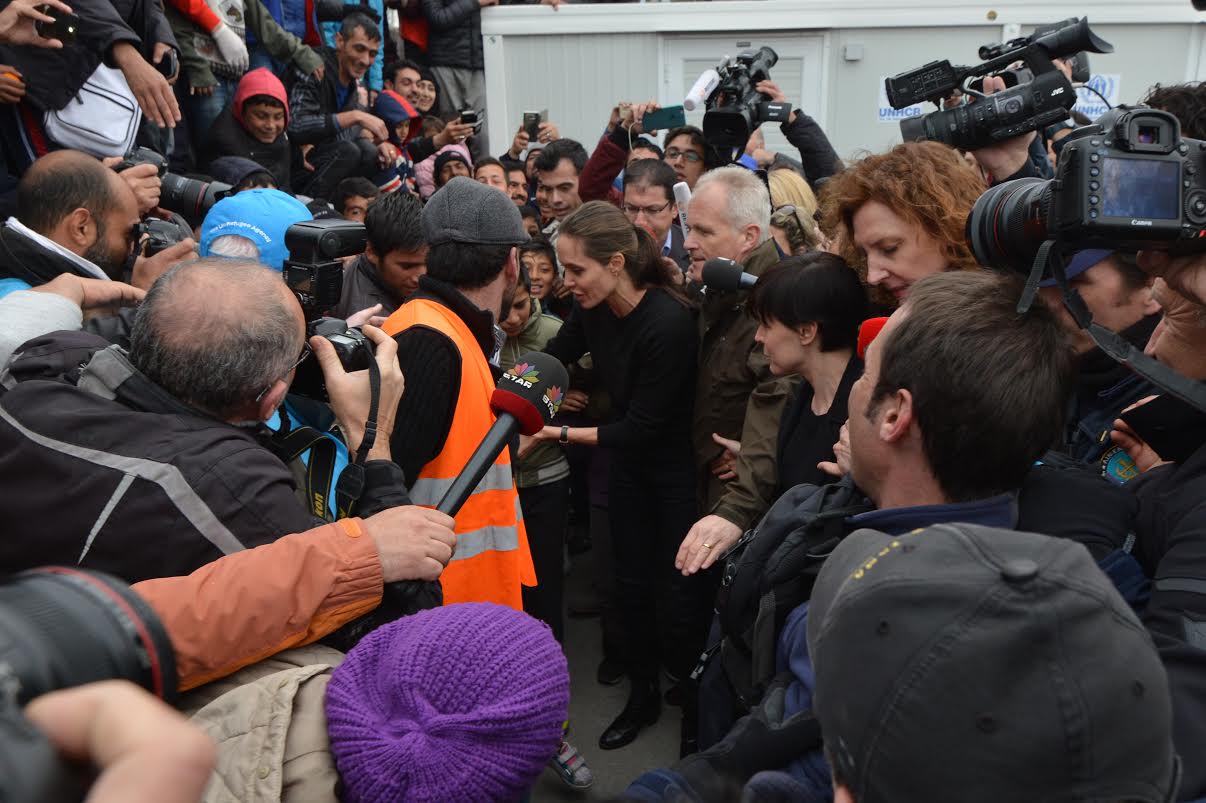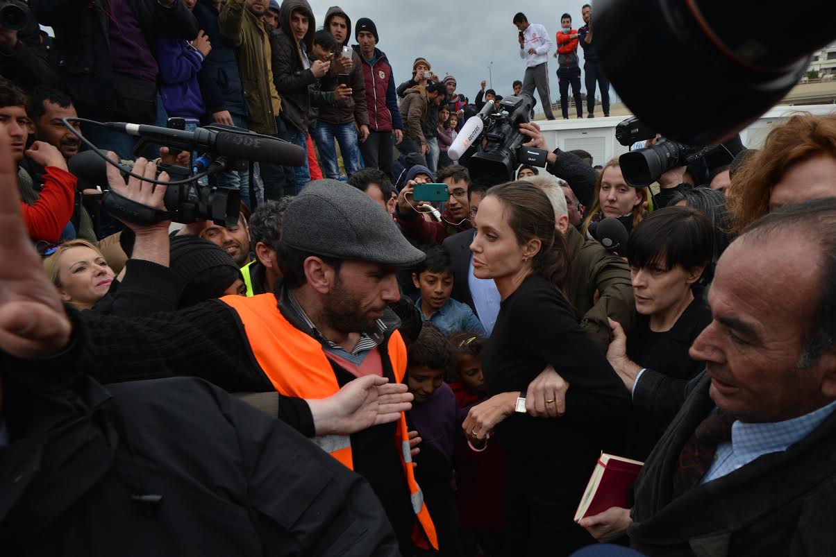 Знаменитая актриса и посол доброй воли ООН оказалась в среду в порту Пирей, где она оставалась в ловушке из почти 4000 беженцев и мигрантов, а затем отправилась в лагерь беженцев в Элеонас.