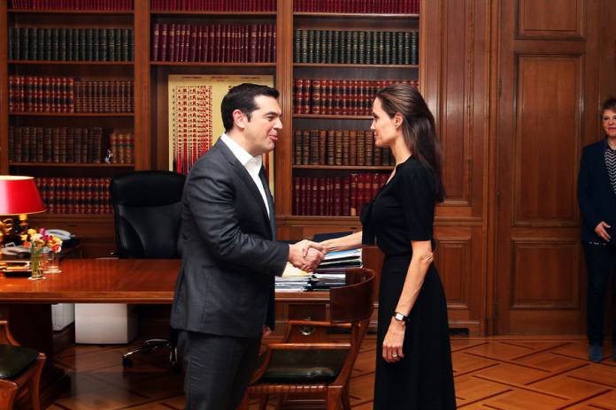 В 17:00 Анджелина Джоли прибыла в Мегаро Максиму и встретилась с премьер-министром страны Алексисом Ципрасом.