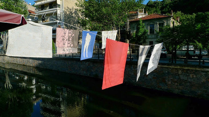 Странное зрелище увидит тот, кто прогуляется от улицы Григория Паламы в центр города Салоники. По пути студенты факультетов изобразительных искусств городов Салоники и Флорина вывесили свою художественную «прачечную». Это белье с ручной росписью, которое предназначено для украшения города.