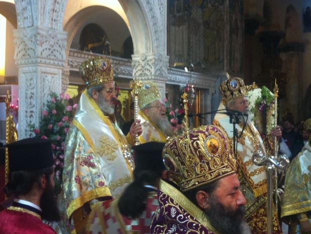 За пределами церкви Святого Димитрия были предприняты строгие меры безопасности, в том числе и с воздуха - полиция патрулировала город на вертолетах.