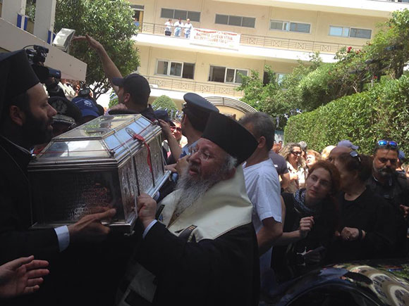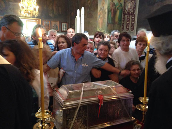 Многочисленные верующие собрались поклониться святыне. Очередь, обмороки и протесты - все это можно было наблюдать в эти часы. В полдень мощи вернулись в церковь Агиас Варварас.