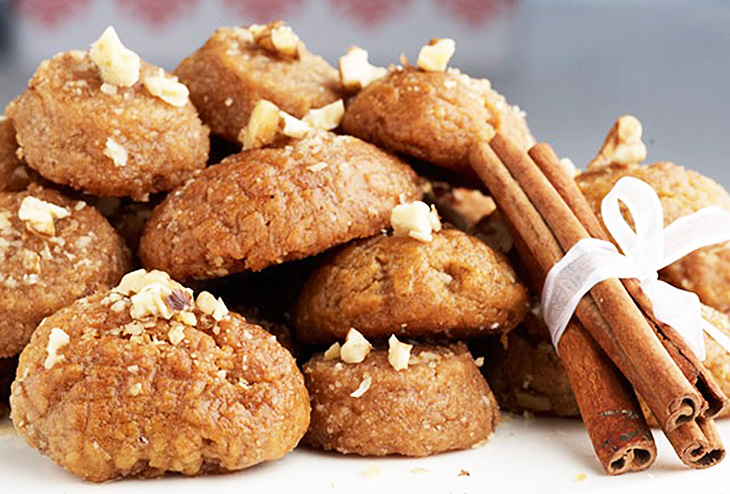 Бок о бок с Курабьедес на праздничных столах греков царствует Меламакорона. Запах корицы, апельсинов и гвоздики, которые, как вы понимаете, входят в состав этого тающего во рту печенья, не оставляют равнодушным ни одного гостя греческой семьи. Тем, кто никогда не пробовал Меламакорона, предлагаем восполнить этот пробел и приготовить лакомство своими руками. Рецепт прилагается.