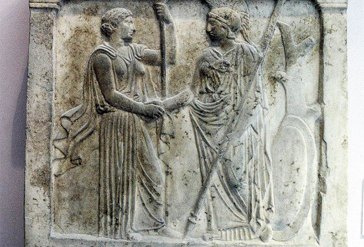 В Древней Греции поцелуи не считались строго романтическими или интимными, скорее, поцелуй часто был приветствием между знакомыми и мог использоваться как знак уважения.