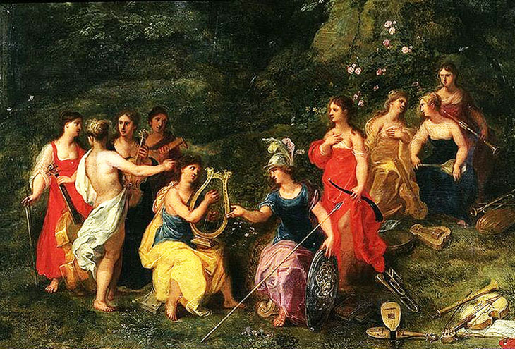 Согласно древнегреческой мифологии, музы являются источником вдохновения для всех искусств и знаний. Дочери Зевса и Мнемозины были романтическими спутниками свиты богов Аполлона.