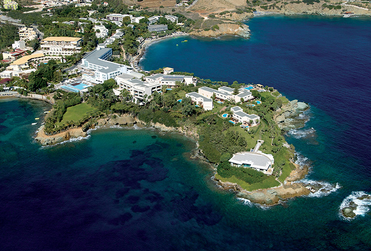 OUT OF THE BLUE, Capsis Elite Resort 5*, который расположен всего в 20 минутах езды от города Ираклион, но при этом представляет собой чуть ли не отдельное государство с другого конца света, поскольку находится на частном полуострове и обладает столь развитой инфраструктурой, что покидать его пределы в ряде случаев не придется даже для посещения достопримечательностей Крита.