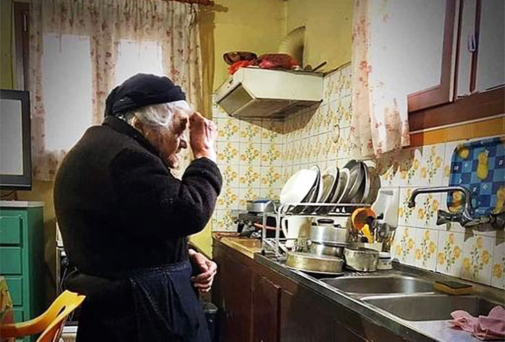 В возрасте 106 лет греческая бабушка по имени Анфи Катцули каждый божий день выходит на крыльцо своего дома и молится за спасение мира.