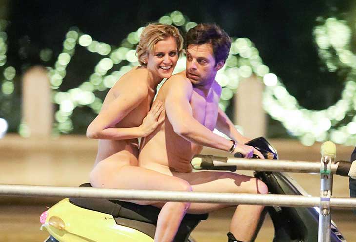 На прошлой недели голливудские актеры Себастиан Стан и Денис Гоф «проехались» по Афинам на мотоцикле полностью обнаженными. Впрочем, ничего безнравственного в их поступке не было, звезды лишь выполняли свою работу.