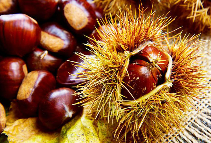 Каштаны на самом деле делятся на две группы: каштаны и маронии. Когда у каштана более двух семян, и они составляют более 20 процентов его веса, их называют каштанами.