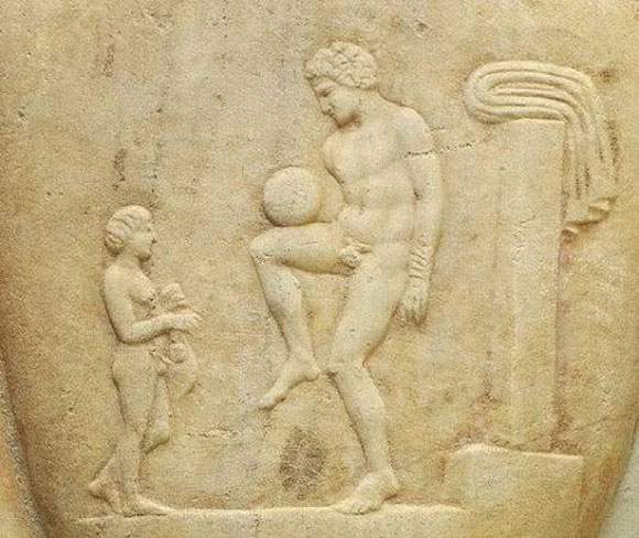 В другой игре мальчики, бросая мяч руками, пытались попасть в горлышко сосуда, что-то вроде современного баскетбола. Пораженный должен был посадить на свою спину победителя.