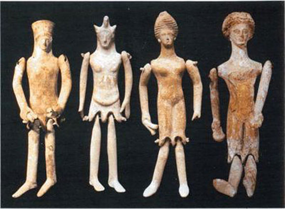 Так куклы часто имели подвижные конечности. Сохранились куклы из кости и глины, но для них использовали и ткани, и воск, и дерево. Во многих случаях это были куклы обнаженные, с тем чтобы девочки могли шить для них одежду и одевать их.