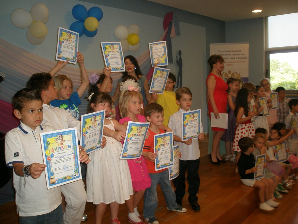 7 июня 2013 года в РЦНК г. Афины в рамках празднования Всемирного дня защиты детей состоялся фестиваль детского творчества, в рамках которого состоялась церемония вручения дипломов Российского центра науки и культуры г. Афины о знании русского языка по итогам тестирования по русскому языку для детей, проведённого 2 июня 2013 года в РЦНК.