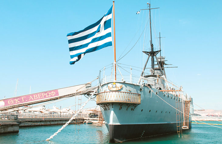 Крейсер «Георгиос Авероф» в порту Фалиро. Фото - protothema.gr