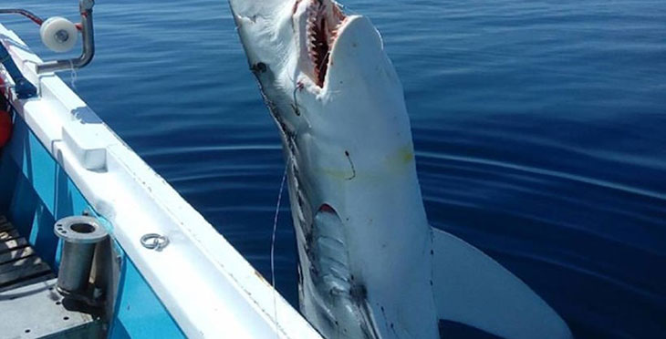 Акулы в Эгейском море явление редкое и все же удачливым рыбакам с острова Скопелос удалось «поймать на удочку» не самую маленькую акулу.