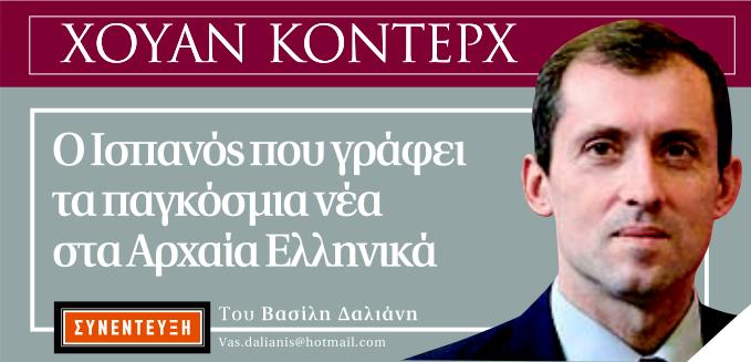 «Мой единственный частый контакт с д-ром Eusebi Ayensa, директор испанского Института Сервантеса в Афинах, который является супер-эллинистом, бывшим профессором древнегреческого языка (преподавал в регионе к северу от Барселоны, недалеко от руин древнего греческого города Эбурис). Он, однако, говорит на древнем и современном греческом», - рассказывает он.