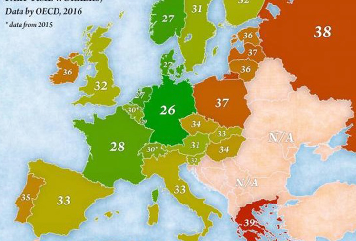 В соответствии с данными ОЭСР, греки работают ровно 39 часов в неделю, и это высочайший показатель в Европе и третий в мире.