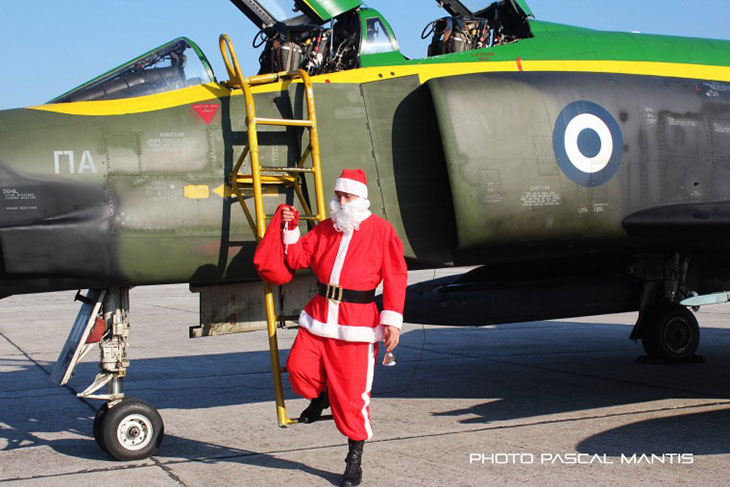 Свое путешествие в греческий город Санта совершил на «санях» модели F-4 Phantom в сопровождении более современного истребителя F-16.