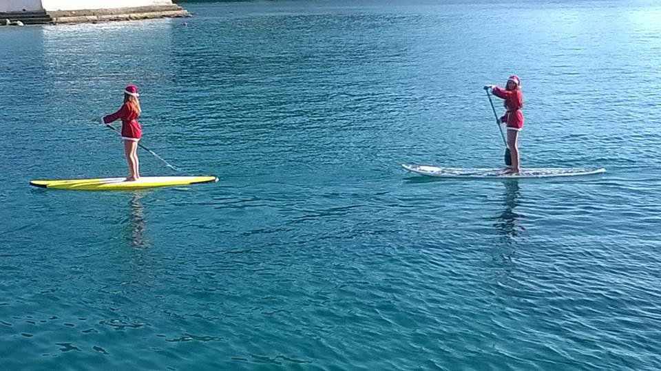 Более привычно видеть Санта-Клауса на санях, однако Санта-Клаусы (кстати, в женском обличие) прибыли на пляж Парги на «Stand Up Paddle» или Supa!