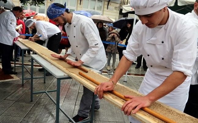 Самую большую кунжутку в мире сотворили студенты Туристического училища города Аргоса на Пелопоннесе под руководством своих преподавателей. Их постная сладость – кунжутка или сезамка – длиной в... 45 метров займет достойное место в книге рекордов Гиннеса!