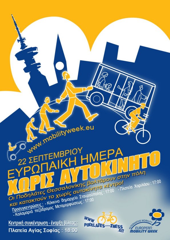 Воскресенье 22 сентября – Всемирный день передвижения без автомобиля, и Салоники принимают в нем самое активное участие, пытаясь, как и многие европейские города, приучить своих жителей пользоваться общественным транспортом, велосипедами и ходить пешком.