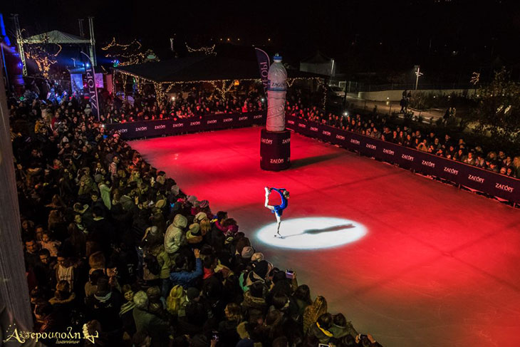 При рождественском поселке действует целый калейдоскоп развлечений, таких как каток под открытым небом,
